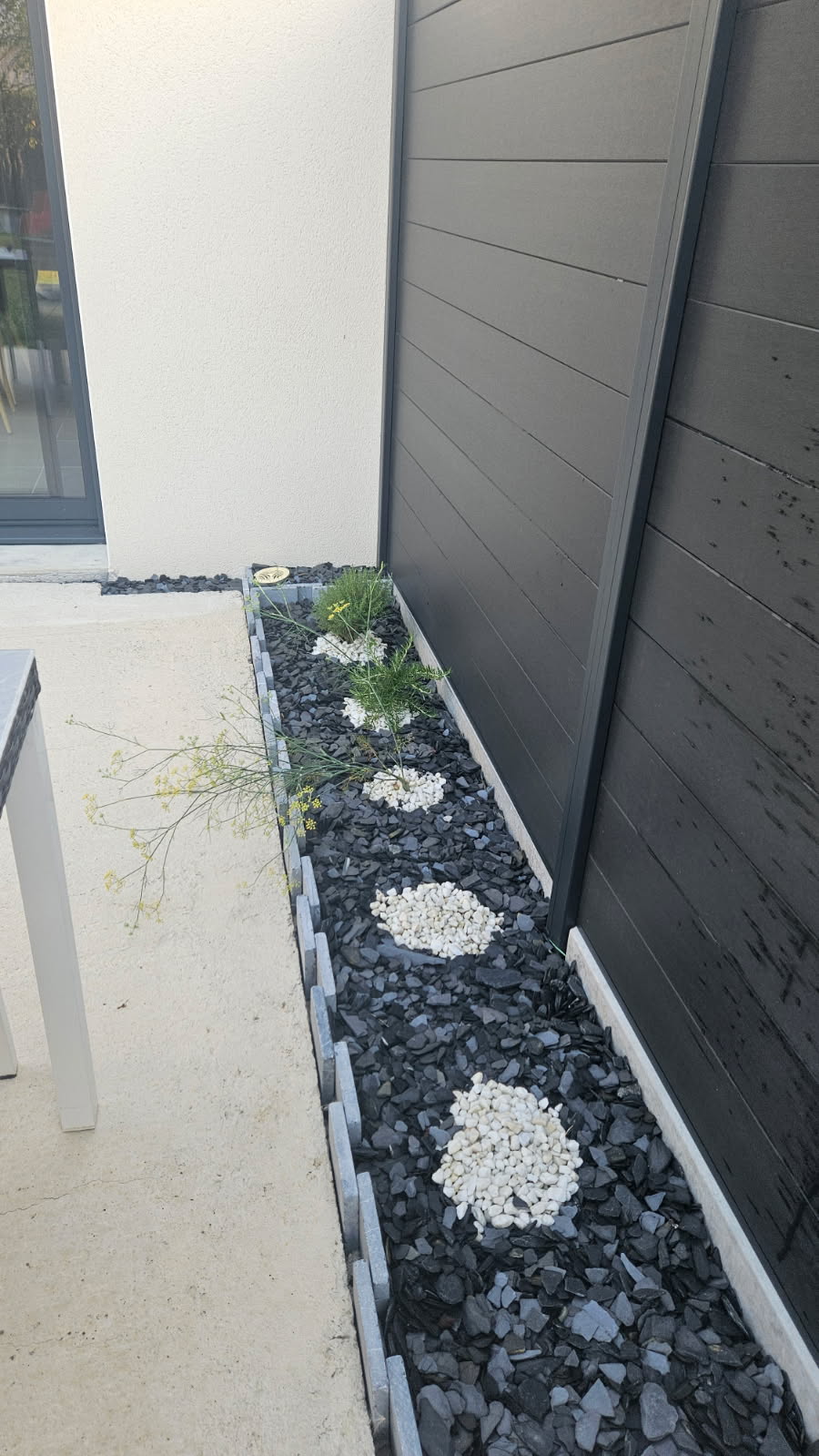 Afin d'agrémenter vos massifs vous pouvez également y poser de l'ardoise concassée qui va s'allier parfaitement avec vos végétaux, galets blancs...